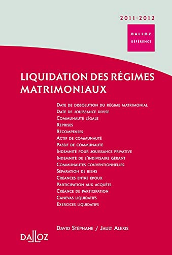 Le Titre Du Livre : Liquidation des régimes matrimoniaux 2011/2012 - 1ère édition: Dalloz Référence